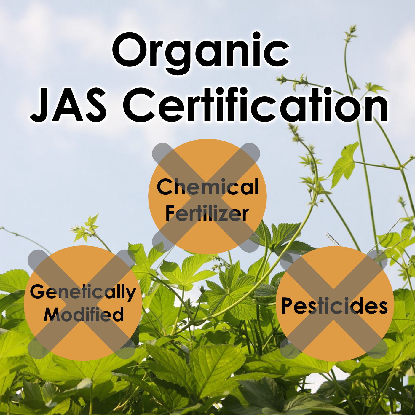 Organic JAS mark is a mark that imaged the sun, clouds and plants. It represents food produced by the power of the natural world without relying on chemical substances such as pesticides and chemical fertilizers, and is attached to agricultural products, processed foods, feeds, livestock products and algae.